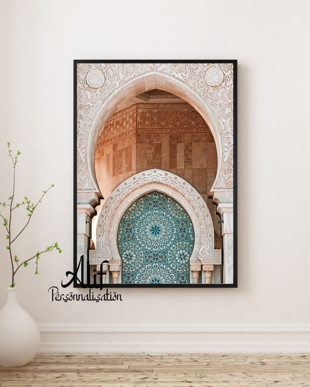 Apportez une touche d’élégance et de spiritualité à votre intérieur avec cette affiche mosquée orientale, inspirée de l’architecture islamique marocaine et andalouse. Son arche sculptée et ses motifs géométriques turquoise rappellent la richesse artistique des mosquées traditionnelles.