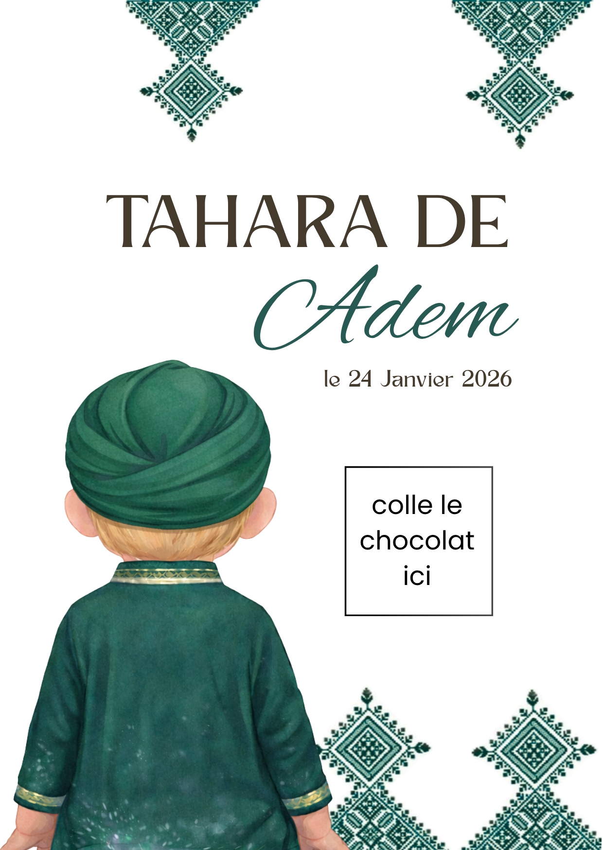 🌙 Carte de bienvenue Tahara personnalisée – Garçon