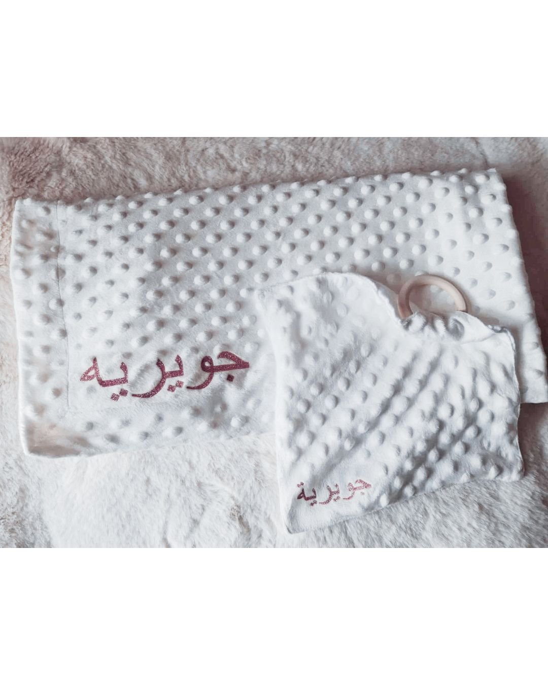 Offrez à votre bébé un cocon de douceur avec cet ensemble couverture et doudou bébé personnalisé en tissu minky, pensé pour accompagner les premiers instants de vie avec confort et tendresse.