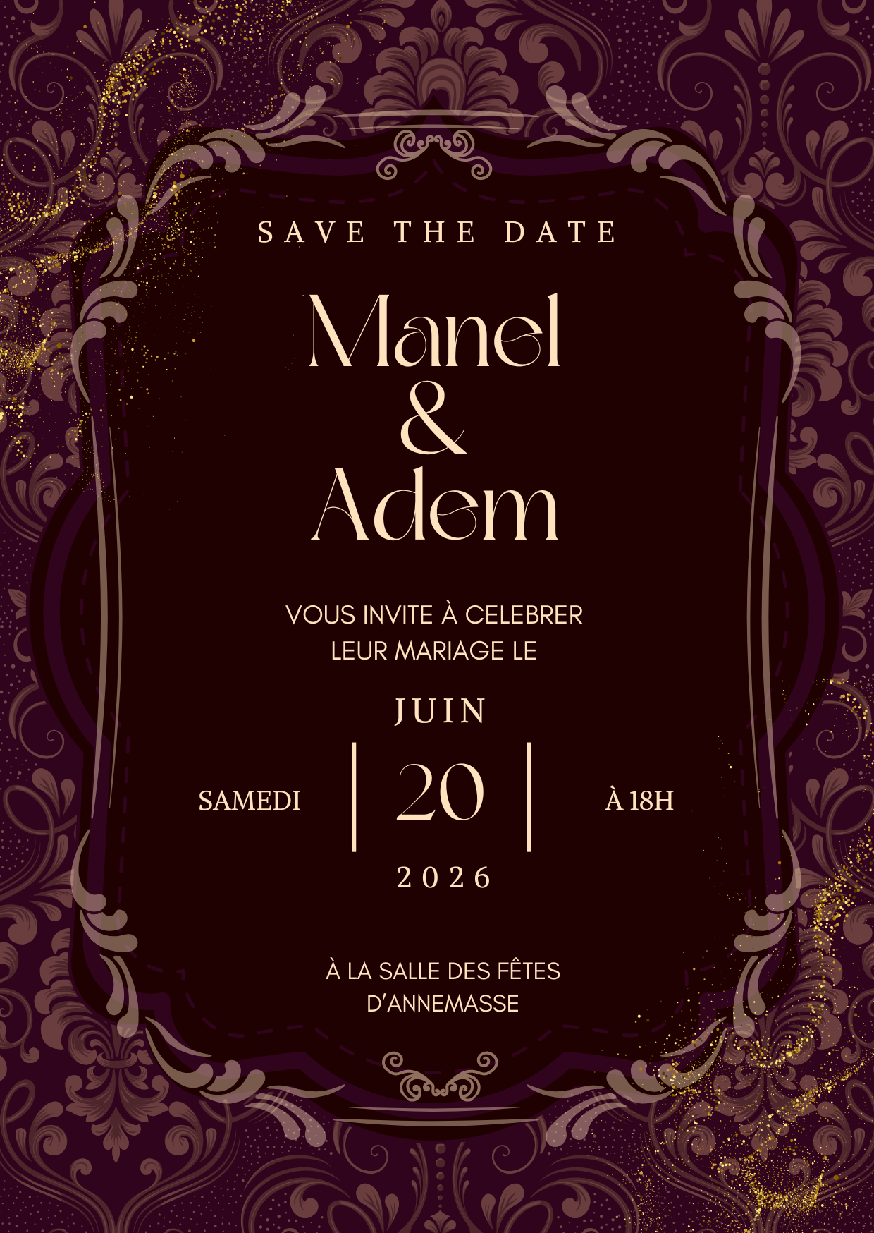 Le faire-part mariage bordeaux personnalisé symbolise passion et élégance.