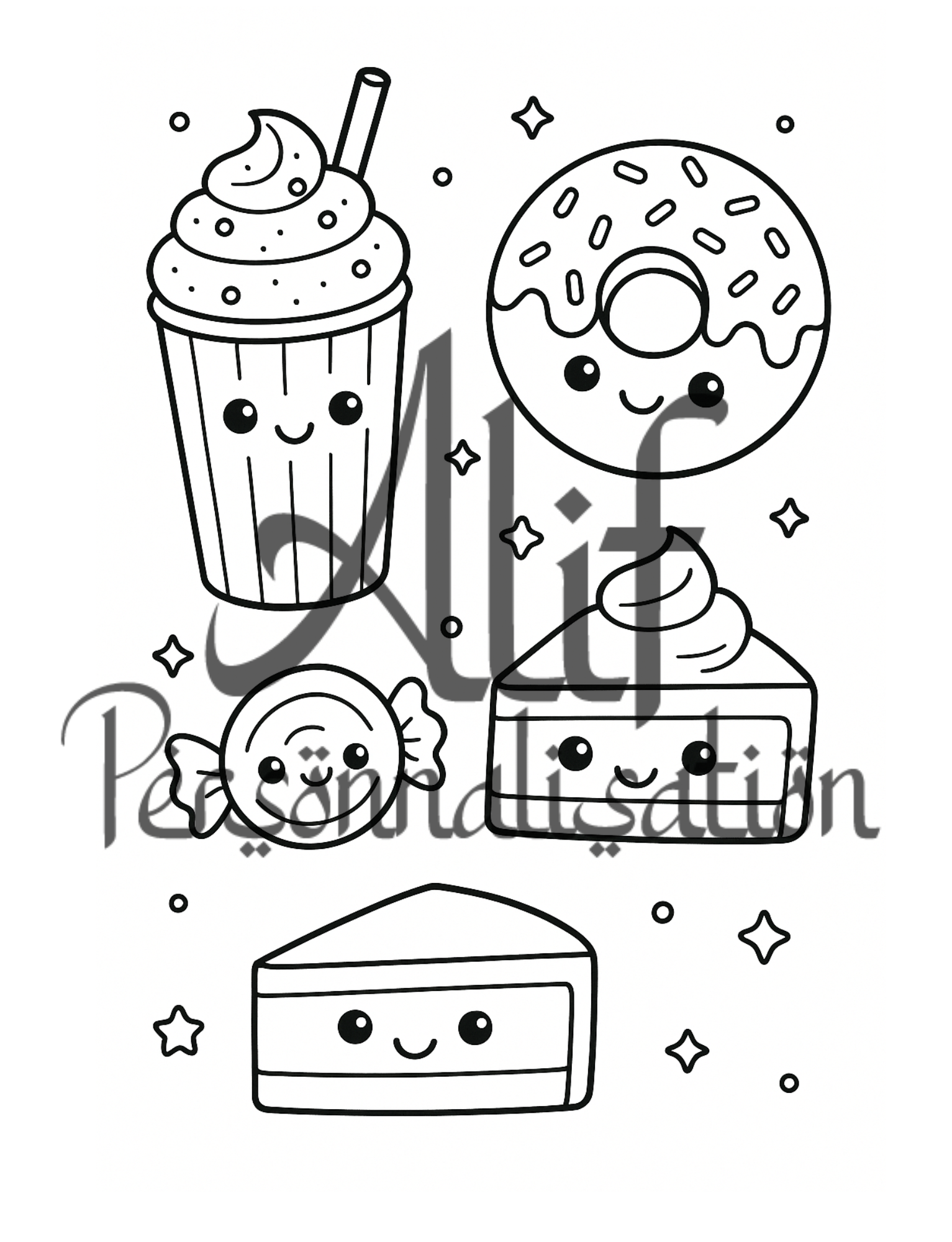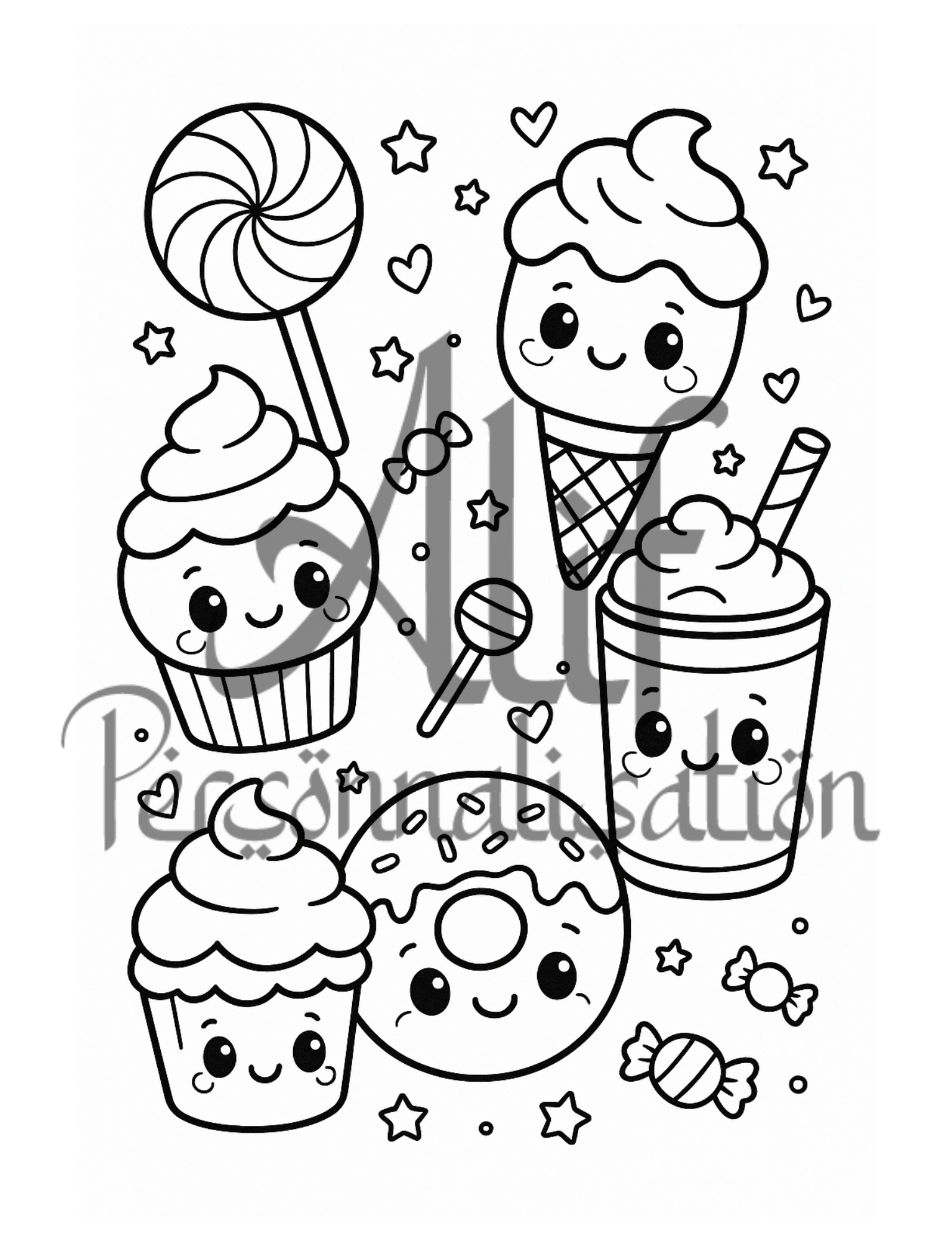 Découvrez le Livre de Coloriage Sucreries Kawaii – un univers doux, mignon et plein de fantaisie, conçu pour offrir des heures de détente et de créativité !