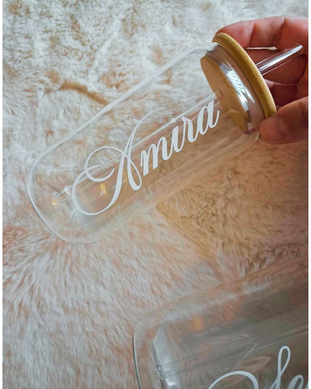Ajoutez une touche élégante et personnelle à votre quotidien avec ce verre personnalisé avec prénom, délicatement inscrit en blanc, comme présenté sur la photo.